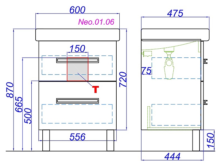 Тумба Aqwella Neo Neo.01.06 благодаря компактным размерам с легкостью впишется в интерьер небольшой ванной комнаты. Хромированные ножки позволяют ровно установить мебель на любой поверхности, а также упрощают уборку. Вместительные ящики тумбы оснащены скрытыми направляющими с системой мягкого закрывания. Фасады мебели производятся из МДФ, боковины из окрашенного ЛДСП. Корпус покрыт глянцевой эмалью, которая характеризуется стойкостью к небольшим механическим повреждениям и простотой в уходе. Тумба используется вместе с раковиной Дрея Q60. Дополнительные характеристики: