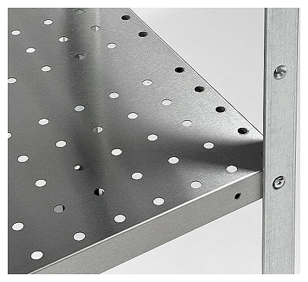 Кухонный стеллаж Restoinox СТПП-7/5-ЭЦ предназначен для хранения посуды, инвентаря и продуктов, не требующих специального температурного режима, на предприятиях общественного питания и торговли. Модель оснащена 4 регулируемыми по высоте перфорированными полками и ребрами жесткости. Разборный каркас выполнен из уголка 40х40 мм оцинкованной стали, ребра жесткости и полки - из нержавеющей стали AISI 430. Дополнительные характеристики: