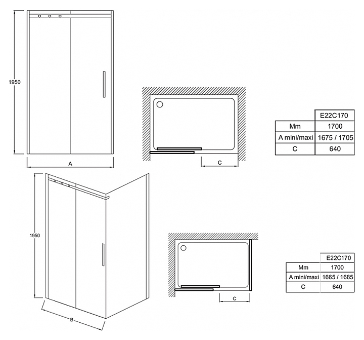 Дверь душевая Jacob Delafon E22C170-GA CONTRA 170х195 см, раздвижная, реверсивная