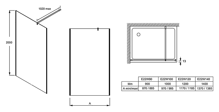 Перегородка душевая Jacob Delafon E22W90-BLV CONTRA 90х200 см, фиксированная