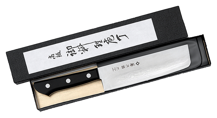 Нож накири Tojiro F-330 предназначен для шинковки всех видов корнеплодов и фруктов в ресторанах, кафе. Лезвие выполнено из высококачественной тридцатисемислойной стали, рукоятка - из стабилизированной древесины. Особенности: