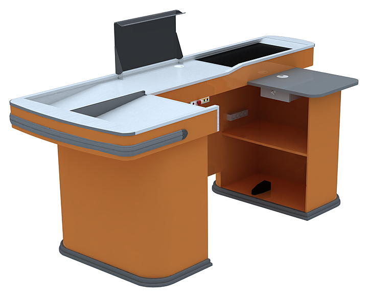 Кассовый бокс Commerce Renessance Супермак 3220 см предназначен для упрощения обслуживания покупателей и проведения с ними взаиморасчетов в супермаркетах. Модель оснащена тумбой кассира, полками в основании, блоком розеток и боковой соединительной панелью. Изделие выполнено из стали, покрытой порошковой краской. В комплект поставки входят палочка "Следующий покупатель". Модель доступна к заказу в синем, красном, оранжевом, желтом, темно-зеленом, светло-зеленом, сером, черном и фиолетовом цвете. Особенности:
