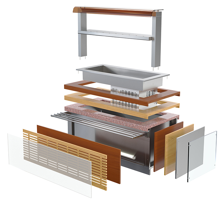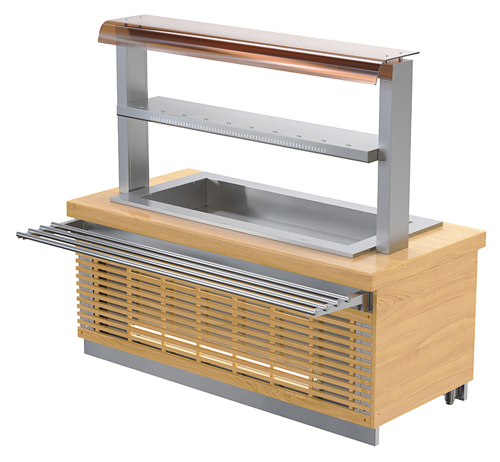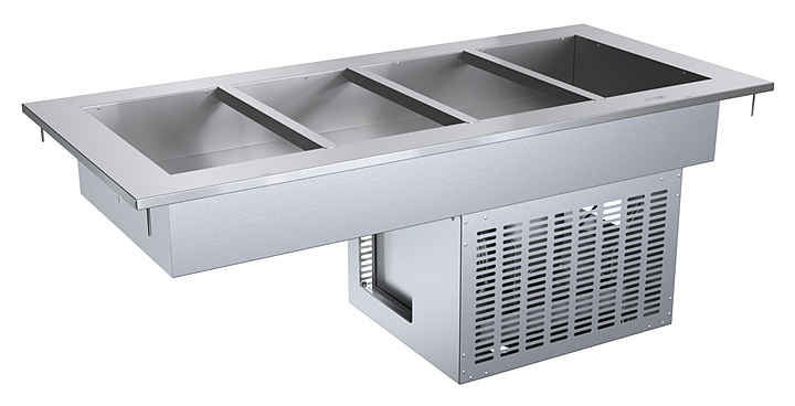 Охлаждаемый стол ATESY Регата ОС-1500-1840-02 используется в составе линии раздачи Регата на предприятиях общественного питания и торговли для кратковременного хранения и раздачи холодных напитков, салатов, кисломолочных продуктов и других блюд, требующих хранения в охлажденном состоянии. Модель представляет собой герметичную ванну для размещения гастроемкостей или напитков и продуктов в фабричной упаковке, а также тарелок с уже сервированными блюдами непосредственно на дне ванны. Модель выполнена из нержавеющей стали. В комплект поставки входят съемные перемычки из нержавеющей стали П-образной формы, позволяющие устанавливать гастроемкости формата GN 1/2 и GN 1/3. Гастроемкости в комплект поставки не входят и приобретаются отдельно. Особенности: