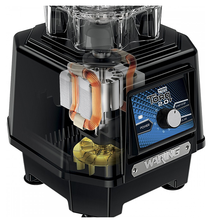 Кухонный блендер Waring TBB175P6E серии TORQ 2.0 предназначен для приготовления блюд средней или тяжелой степени, взбивания соусов, муссов, фруктовых, молочных или алкогольных коктейлей со льдом, для перемешивания и измельчения фруктов и овощей на предприятиях общественного питания, торговли и в домашних условиях. Кувшин с метрическими градациями изготовлен из ударопрочного и термостойкого кополиэстера (BPA-free), корпус - из ABS-пластика, полностью заменяемый нож - из нержавеющей стали. В комплект поставки входят кувшин из тритана и прорезиненный звукопоглощающий коврик под кувшин. Особенности: