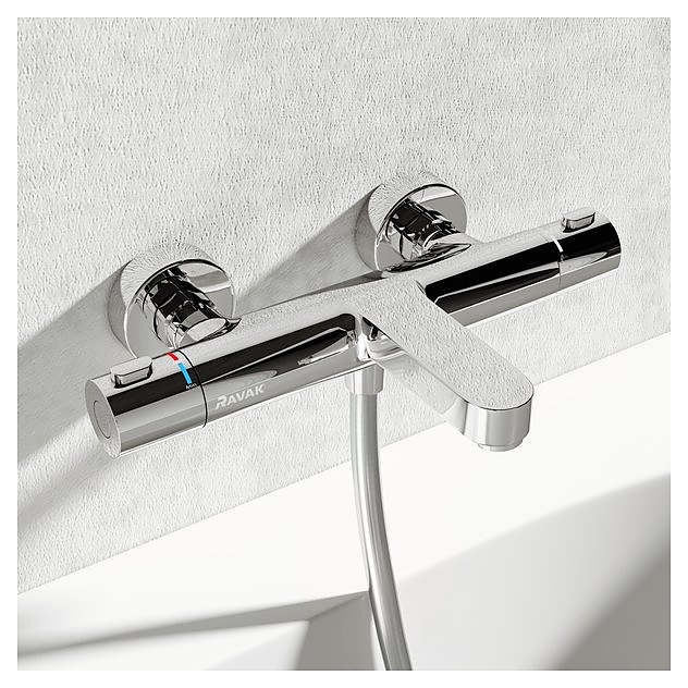 Настенный термостатический смеситель для ванны и душа Ravak TE 023.00/150 Termo 300 предназначен для использования в ванных помещениях для подачи горячей и холодной воды. Модель поддерживает постоянную температуру воды даже при изменении давления в трубах и обеспечивает поступление воды заданной температуры. Блокирующая кнопка на головке термостата препятствует самопроизвольному включению воды с температурой выше 38°C, что исключает ожоги, а функция CoolFeel предотвращает чрезмерный нагрев смесителя на поверхности. Изделие выполнено из высококачественной латуни, которая отличается прочностью, долговечностью и устойчивостью к перепадам температур. Особенности: