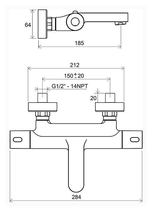 Смеситель для ванны и душа настенный термостатический Ravak TE 023.00/150 Termo 300