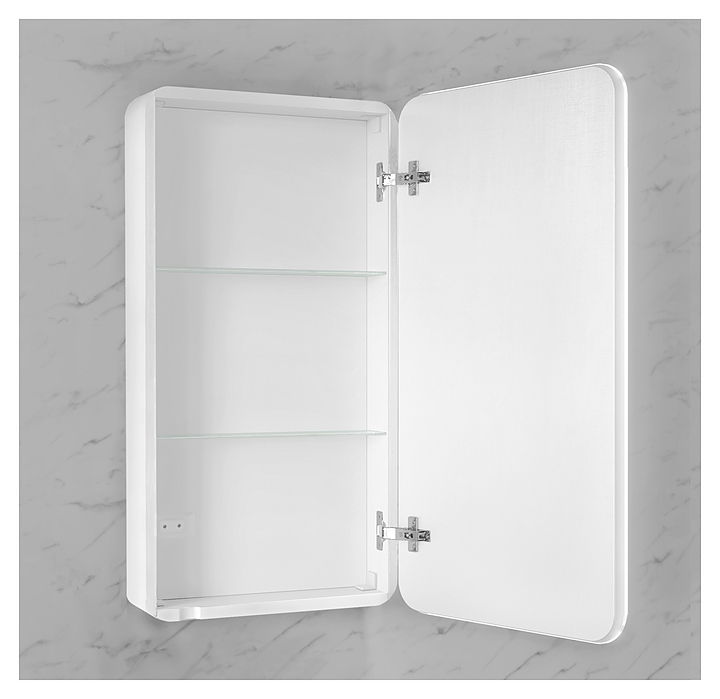 Зеркальный шкаф Jorno Pastel 46 Pas.03.46/W сочетает в себе простоту, изысканность и функциональность. Благодаря своей компактности идеально подходит для малогабаритных помещений. Модель оснащена двумя стеклянными полками для хранения. Сенсорный диммирующий выключатель дополняет композицию тонких полос комплекта. Выступающий край зеркальной дверки делает образ легче, а открывание удобным. Внутри шкафа встроена розетка. Корпус выполнен из МДФ и покрыт глянцевой эмалью, предназначенной для использования во влажных помещениях, что обеспечивает изделию привлекательный внешний вид, а также износостойкость и долговечность. Изделие поставляется в собранном виде с комплектом креплений. Комплектация: