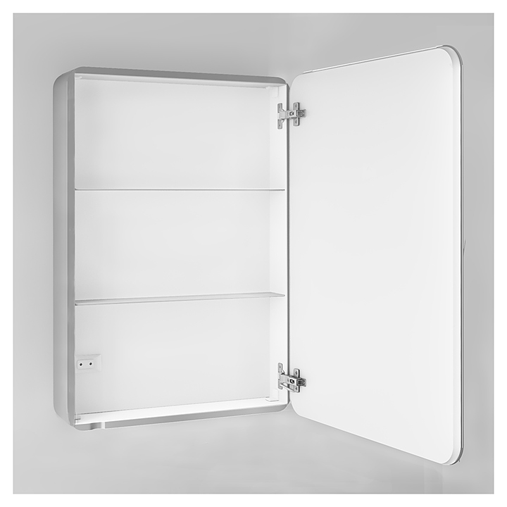 Зеркальный шкаф Jorno Pastel 60 Pas.03.60/GR сочетает в себе простоту, изысканность и функциональность. Благодаря своей компактности идеально подходит для малогабаритных помещений. Модель оснащена двумя стеклянными полками для хранения. Сенсорный диммирующий выключатель дополняет композицию тонких полос комплекта. Выступающий край зеркальной дверки делает образ легче, а открывание удобным. Внутри шкафа встроена розетка. Корпус выполнен из МДФ и покрыт глянцевой эмалью, предназначенной для использования во влажных помещениях, что обеспечивает изделию привлекательный внешний вид, а также износостойкость и долговечность. Изделие поставляется в собранном виде с комплектом креплений. Комплектация: