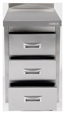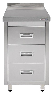 Производственный стол Restoinox СП3Я-6/6-Б предназначен для обработки продуктов питания, раскатки теста и хранения кухонного инвентаря, также для размещения малогабаритного оборудования на предприятиях общественного питания и торговли. Модель оснащена регулируемыми по высоте опорами и выдвижными ящиками. Ножки выполнены из квадратной трубы 40х40 мм из нержавеющей стали Aisi 430, корпус, рабочая поверхность и ящики - из нержавеющей стали Aisi 430, задняя стенка - из оцинкованной стали, столешница усилена листом ЛДСП. Особенности: