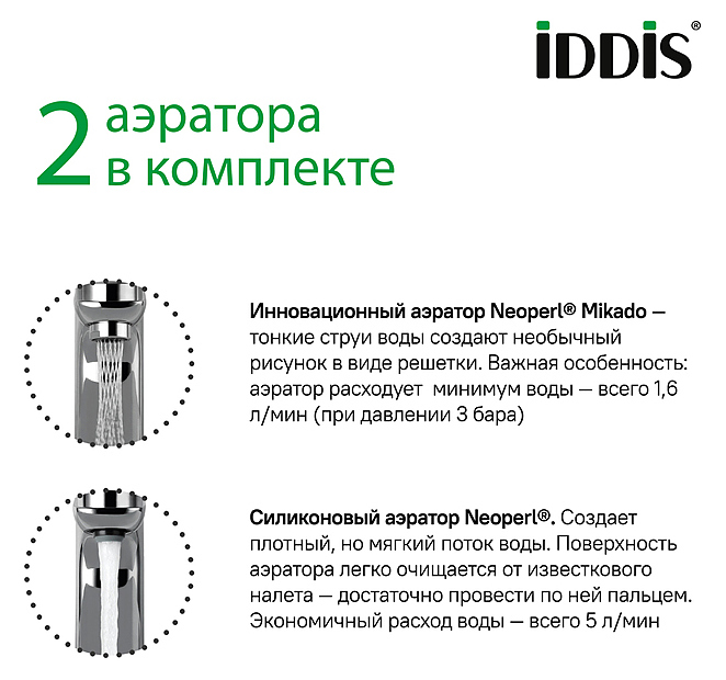 Смеситель для раковины IDDIS SLIDE SLISBBTi01 выполнен в стиле модерн и используется для подачи и смешивания горячей и холодной воды. Модель устанавливается на раковину, оснащена кнопочным управлением и фиксированным изливом. Управление Push Control позволяет очень быстро и плавно регулировать подачу воды одним нажатием на кнопку, а температуру можно регулировать вращением ручки вокруг кнопки. Два технологичных аэратора Neoperl® легко создают разные потоки воды и легко очищаются от ржавчины и известковых отложений. Изделие выполнено из высококачественной латуни, которая отличается прочностью, долговечностью и устойчивостью к перепадам температур, с устойчивым к износу и эрозии комбинированным покрытием, благодаря которому не теряет презентабельный вид. В комплект поставки входит гибкая подводка, крепеж. Особенности: