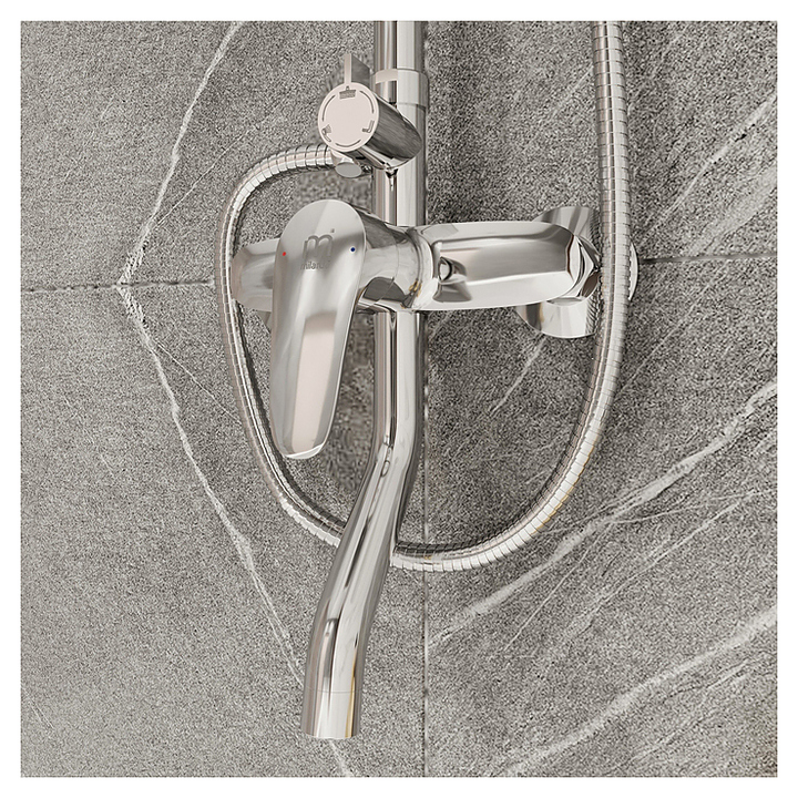 Смеситель для ванны и душа настенный Milardo Simp SIMSB1FM06 выполнен в современном стиле и используется для подачи и смешивания горячей и холодной воды. Модель оснащена верхним душем, однозахватным рычагом, характеризующимся плавной работой и поворотным девиатором. Ручное переключение ванна/душ позволяет использовать функцию "душ" даже при низком давлении воды. Аэратор гарантирует простое удаление водного камня. Изделие выполнено из высококачественной латуни, которая отличается прочностью, долговечностью и устойчивостью к перепадам температур, с устойчивым к износу и эрозии покрытием, благодаря которому не теряет презентабельный вид. В комплекте поставляется душевая лейка, шланг из нержавеющей стали, отражатели, настенный держатель. Особенности: