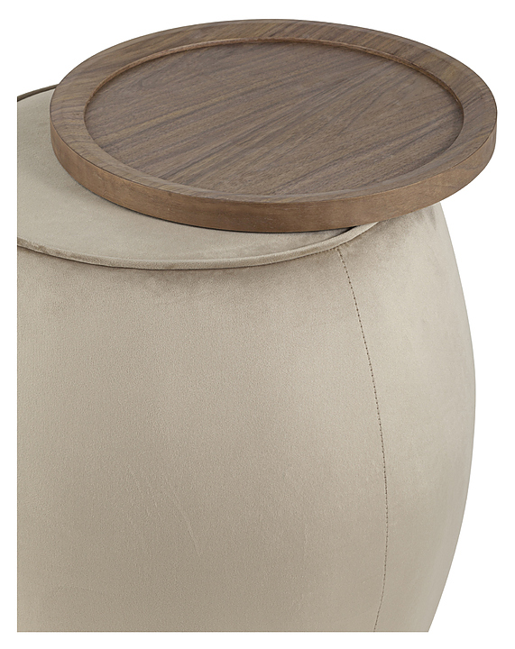 Журнальный стол Stool Group Баррель предназначен для использования на даче, дома, а также в кафе и ресторанах. Каркас стола обит бархатистой тканью, крепкой и износостойкой, светло-серого цвета, столешница изготовлена из МДФ цвета грецкий орех. Дополнительные характеристики: