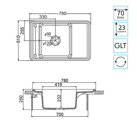Кухонная мойка AQUATON Беллис 1A725032BS250 78 выполнена в современном минималистичном стиле. Модель оснащена одной увеличенной глубокой чашей, в которой можно помыть сковородки, кастрюли, противни и другую посуду любого размера и крылом сбоку. Оборачиваемость мойки позволяет при установке выбрать расположение крыла слева или справа. Корзинчатый вентиль, расположенный в сливном отверстии, выполняет функцию фильтра. Изделие выполнено из литого мрамора, обладающего высокими бактерицидными свойствами и устойчив к резким перепадам температур. Комплектация: