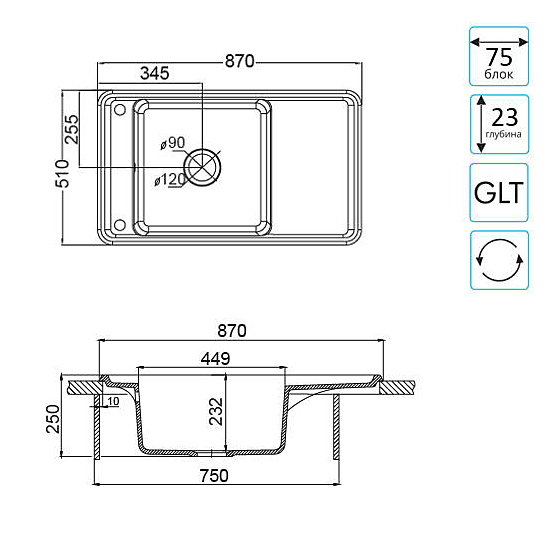 Кухонная мойка AQUATON Беллис 1A724832BS290 87 выполнена в современном минималистичном стиле. Модель оснащена одной увеличенной глубокой чашей, в которой можно помыть сковородки, кастрюли, противни и другую посуду любого размера и крылом сбоку. Оборачиваемость мойки позволяет при установке выбрать расположение крыла слева или справа. Корзинчатый вентиль, расположенный в сливном отверстии, выполняет функцию фильтра. Изделие выполнено из литого мрамора, обладающего высокими бактерицидными свойствами и устойчив к резким перепадам температур. Комплектация:
