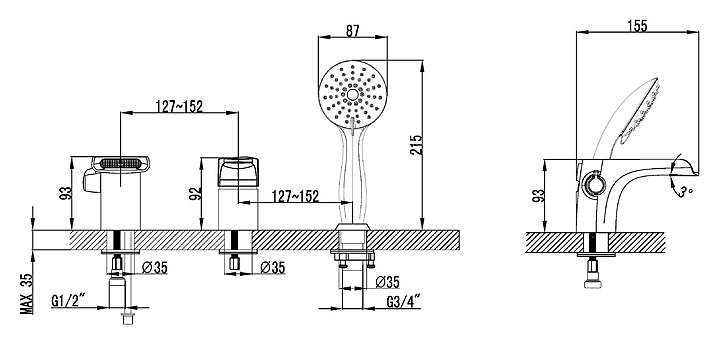 Смеситель для ванны и душа LEMARK Shift LM4345C встраиваемый на борт ванны, 3 отверстия, хром