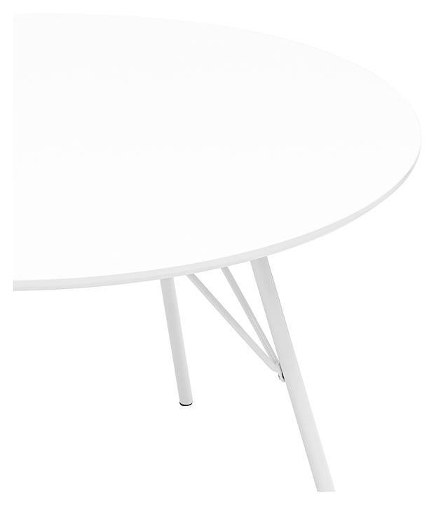 Обеденный стол Stool Group Мемфис D110 белый предназначен для использования на даче, дома, для кухни, для маленькой кухни, а также в кафе и ресторанах. Модель выполнена в стиле минимализма. Столешница изготовлена из практичного МДФ, ножки - из металла. Дополнительные характеристики:
