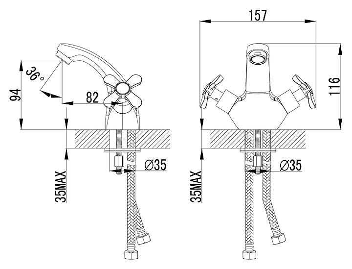 Смеситель для раковины LEMARK Partner LM6546C предназначен для использования в ванных помещениях для подачи горячей и холодной воды. Серия Partner выполнена в традиционном стиле. Модель оснащена керамической кран-буксой для бесшумного смешивания холодной и горячей воды, а также аэратором для создания мягкой ровной струи без разбрызгивания. Изделие выполнено из высококачественной латуни, отличающейся прочностью, долговечностью и устойчивостью к перепадам температур. В комплект поставки входят аэратор, крепления, металлические рукоятки и гибкая подводка. Особенности: