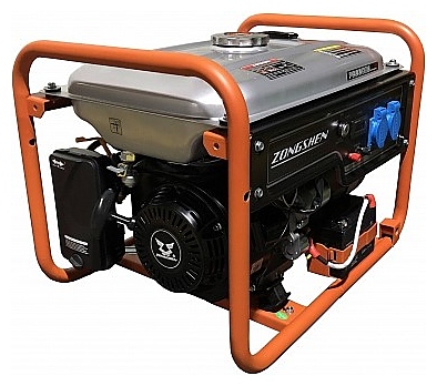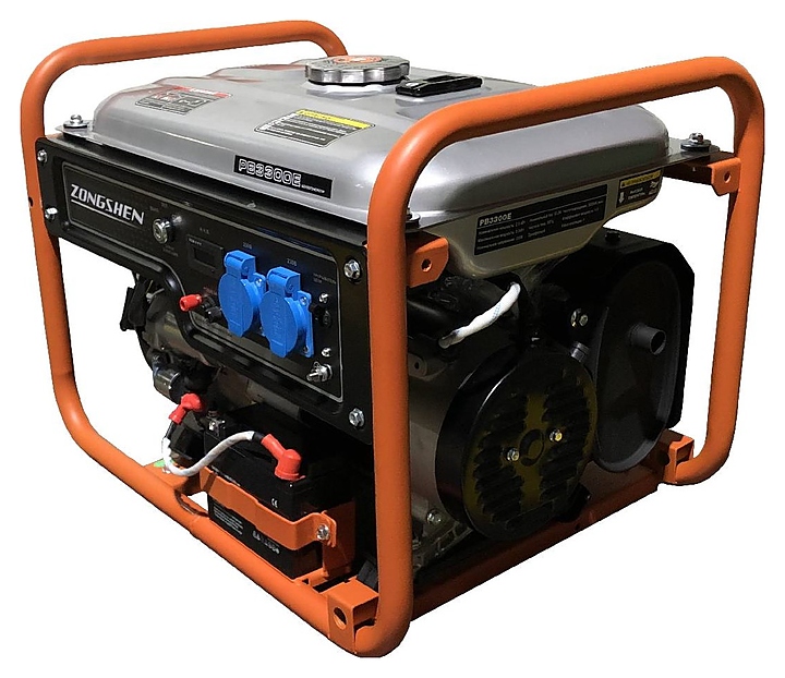 Генератор бензиновый Zongshen PB 3300 E предназначен для резервного электроснабжения в местах с постоянным или временным отключением электрической энергии, максимальной мощностью до 3 кВт. Модель оснащена четырехтактным двигателем ZONGSHEN GB210 с электростартером, аккумулятором. Корпус выполнен из стальной рамы, которая служит не только для защиты двигателя, но и для удобной транспортировки электростанции. Особенности: