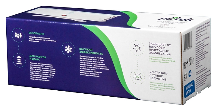 Бактерицидный ультрафиолетовый рециркулятор Поток 190/2 используется на дому, на предприятиях общественного питания и торговли, в офисах, образовательных и медицинских учреждениях, а также в других местах общественного пользования для обеззараживания воздуха в помещениях, то есть уничтожения практически всех известных вирусов, болезнетворных бактерий и грибов. Может использоваться в присутствии детей, ребёнок может трогать прибор, перемещать его с места на место. Модель оснащена устойчивой, широкой ножкой, прикрепленной к корпусу на саморезы, и встроенным Wi-Fi. Корпус выполнен из окрашенного металла. Особенности: