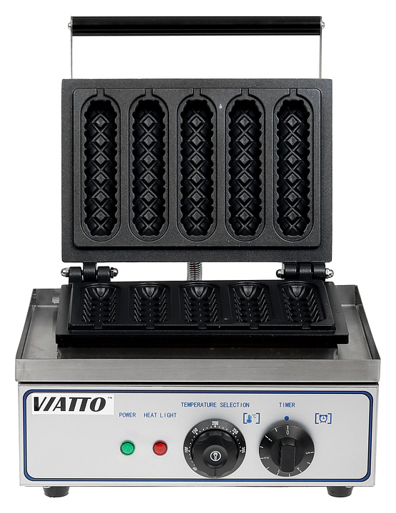 Аппарат для корн-догов VIATTO VKD-5 используется на предприятиях общественного питания и торговли для приготовления хрустящих сосисок в тесте. Модель оснащена таймером. Корпус выполнен из нержавеющей стали, рабочие поверхности - из алюминия с антипригарным покрытием. Характеристики: