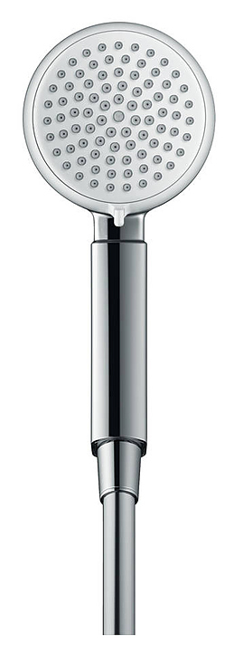 Ручной душ Hansgrohe Crometta 100 1jet 26825400 предназначен для использования в ванных комнатах. Модель имеет душевую головку круглой формы, которая образует впечатляюще большую зону принятия душа. Известковый налет на силиконовых форсунках с легкостью удаляется благодаря технологии QuickClean, достаточно слегка потереть и структура струи снова идеальна. Особенности: