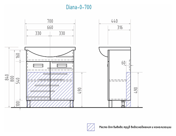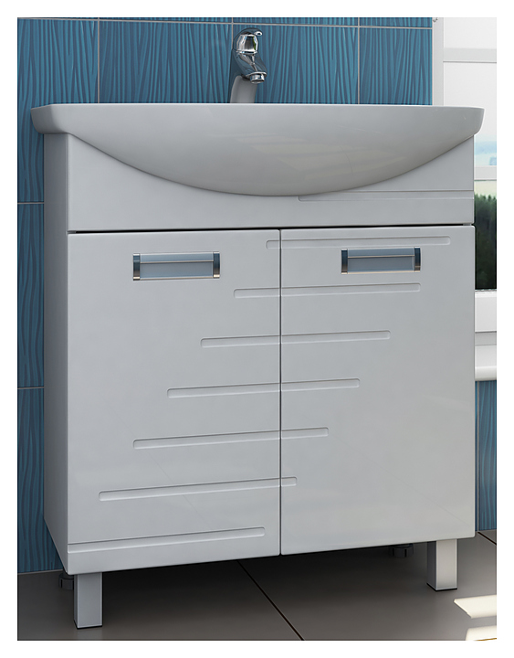 Тумба под раковину VIGO Diana 70 выполнена в современном стиле и прекрасно впишется в интерьер любой ванной комнаты. Модель оснащена двумя отделениями для хранения с дверцами. Корпус изделия выполнен из влагостойкой ЛДСП. Фасад изделия выполнен из ЛМДФ с глянцевой пленкой ПВХ. Тумба может использоваться вместе с раковиной Сантек Балтика 70. Раковина и смеситель в комплект поставки не входят и приобретаются отдельно. Комплектация: