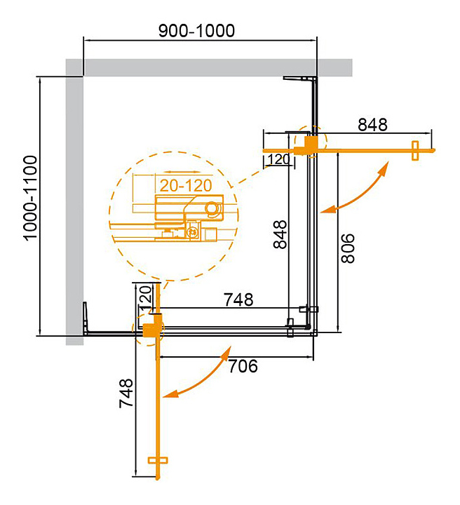 Уголок душевой CEZARES SLIDER-AH-2-90/100-100/110-C-Cr