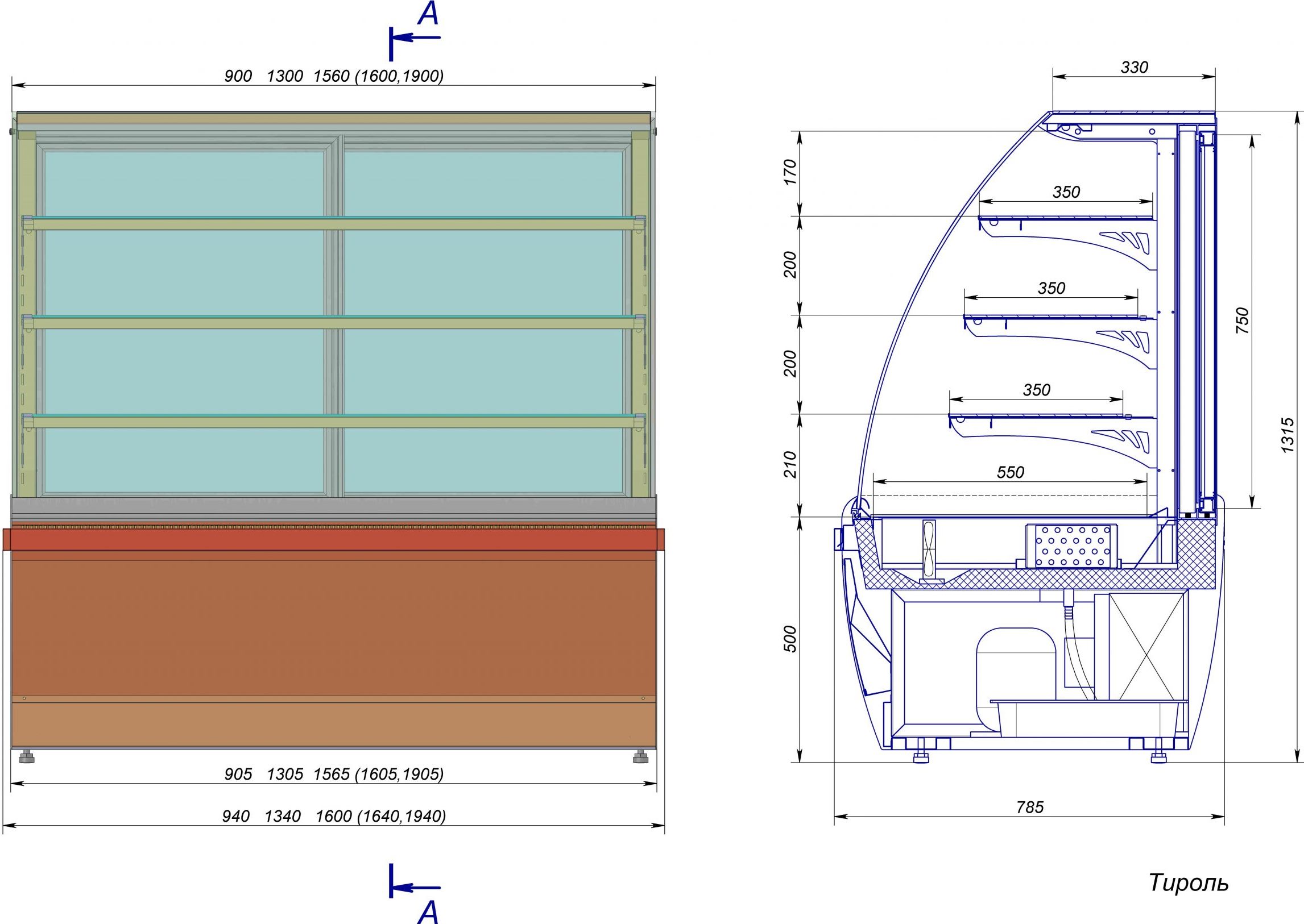 Кондитерская витрина Премьер Тироль-190 предназначена для демонстрации, охлаждения и краткосрочного хранения кондитерских изделий, закусок и десертов на предприятиях общественного питания и торговли. Модель оснащена передними откидывающимися стеклами с обдувом теплым воздухом от запотевания и 3 дополнительными охлаждаемыми стеклянными полками с энергосберегающей LED подсветкой. Базовая полка выполнена из нержавеющей стали, двери-купе - из стеклопакета. Особенности: