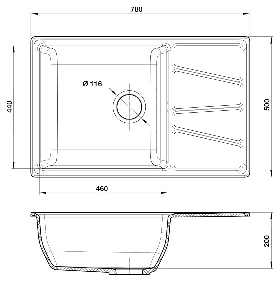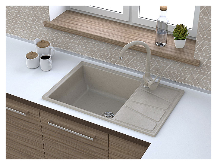 Кухонная мойка GranFest Vertex GF-V-780L предназначена для установки в частных домах, квартирах, офисах, отелях, гостиницах и на различных предприятиях для мытья столовых принадлежностей, посуды, приборов, инвентаря и продуктов питания. Модель оснащена крылом для сушки посуды. Изделие выполнено из мрамора, который устойчив к образованию пятен и воздействию высоких температур. Дополнительные характеристики: