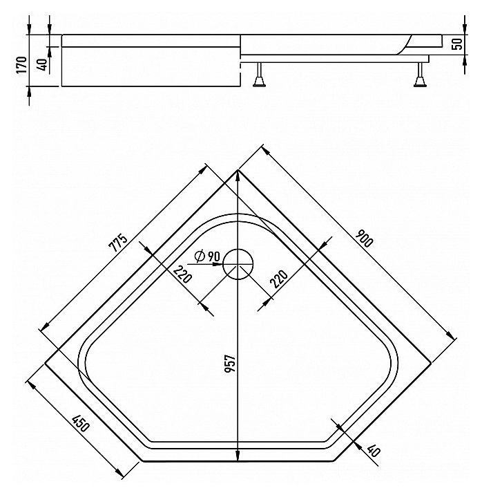 Душевой поддон ALEX BAITLER AB9017V-1 выполнен в современном стиле, благодаря универсальному дизайну, компактным размерам и совместимости с любыми типами монтажа, модель идеально впишется в любую ванную комнату. Изделие выполнено из европейского сантехнического акрила, который мгновенно прогревается, обладает стойким белоснежным цветом, небольшим весом и высокими шумоизоляционными характеристиками, а также устойчив к механическим повреждениям. В комплект поставки входит сифон, каркас, регулируемые ножки. Особенности: