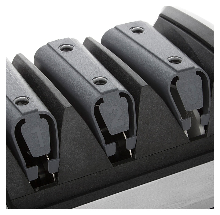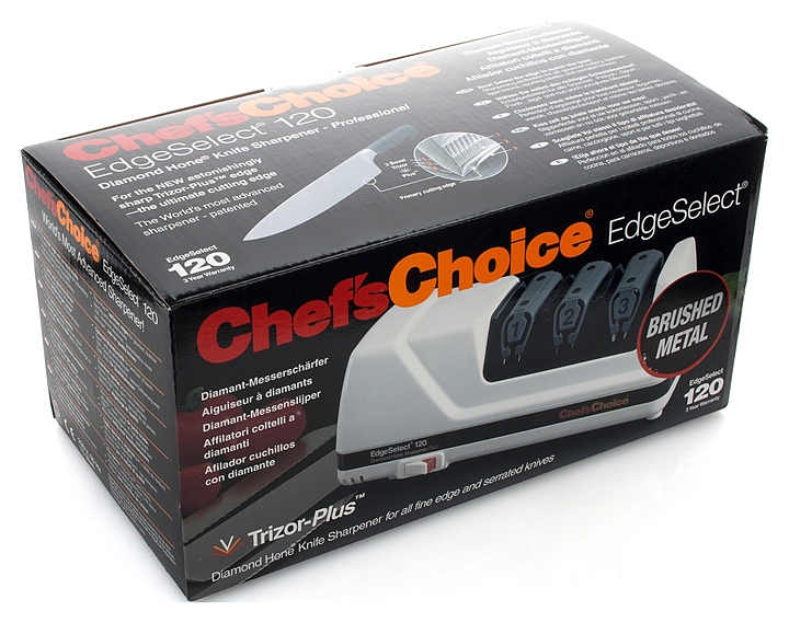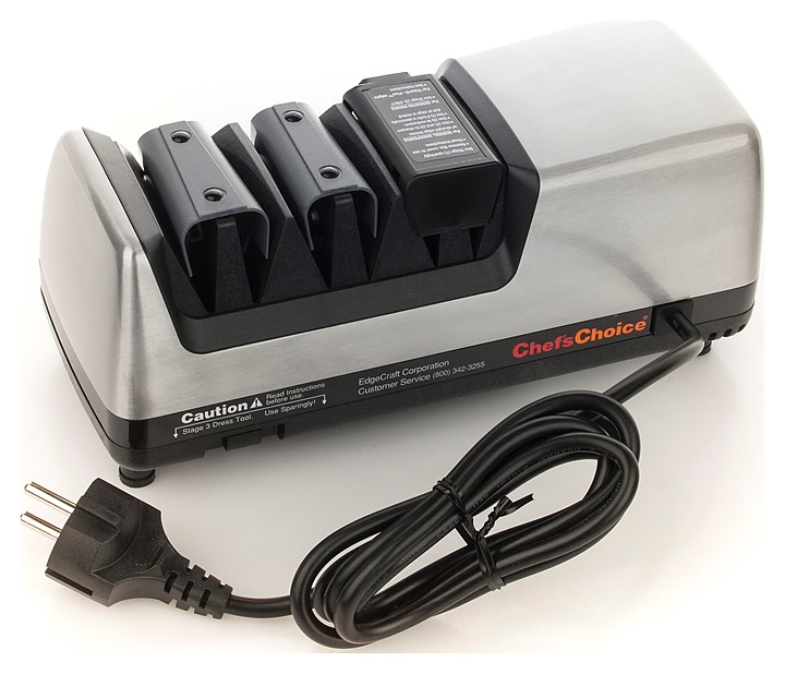 Электрическая точилка Chefs Choice CC120M предназначена для заточки ножей на предприятиях общественного питания и торговли, в частных домах и квартирах. Устройство работает с клинками, имеющими прямую и серрейторную режущую кромку. Направляющие и ножки выполнены из эластомера. Особенности: