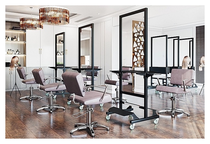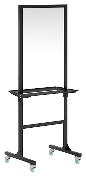 Парикмахерское зеркало Mertz Modus используется в парикмахерских, барбершопах и салонах красоты для увеличения угла обзора мастера на свою работу во время оказания парикмахерских процедур и для удовлетворения желания клиента постоянно наблюдать за процессом оказываемых ему услуг. Зеркало - один из центральных элементов парикмахерской, формирующих стиль заведения. Модель оснащена 2-мя широкими складными полками для инструментов, надежными прорезиненными колесами, обеспечивающими высокую мобильность. Каркас выполнен из прочного металлического профиля. Особенности: