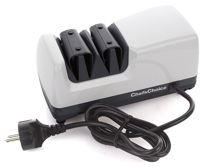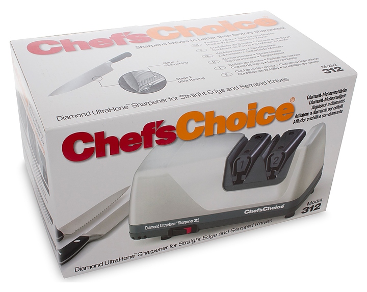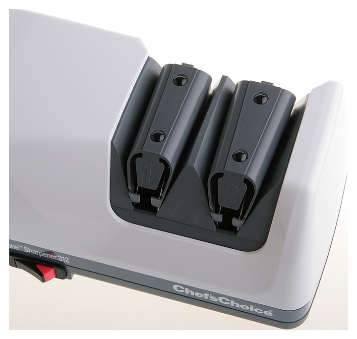 Электрическая точилка Chefs Choice CC312 предназначена для заточки ножей на предприятиях общественного питания и торговли, в частных домах и квартирах. Точное формирование кромки обеспечивается коническими алмазными абразивными дисками и оптимальным давлением на лезвие. Высокоточные направляющие автоматически располагают лезвие ножа под нужным углом. Особенности: