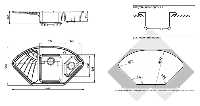 Кухонная мойка GranFest Corner GF-C-1040E предназначена для установки в частных домах, квартирах, офисах, отелях, гостиницах и на различных предприятиях для мытья столовых принадлежностей, посуды, приборов, инвентаря и продуктов питания. Модель оснащена дополнительной раковиной и крылом для сушки посуды. Изделие выполнено из мрамора, который устойчив к образованию пятен и воздействию высоких температур. Особенности:
