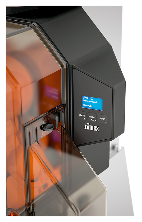 Соковыжималка Zumex Speed Up All-in-One предназначена для приготовления натурального сока из различных видов цитрусовых на предприятиях общественного питания и торговли. Модель оснащена сенсорной панелью управления с цифровым дисплеем. В комплект поставки входит подиум Wide Black с поддоном для сбора капель и 2 баками для отходов и система динамической резки для приготовления сока из мягких цитрусовых. Особенности: