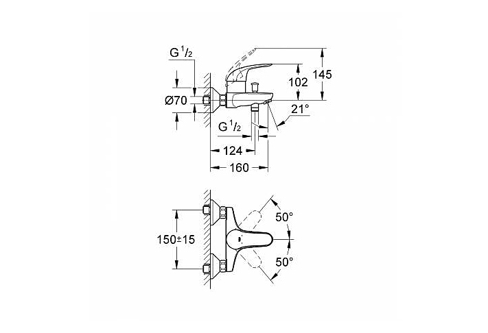 Смеситель для ванны и душа настенный Grohe Euroeco 32743000