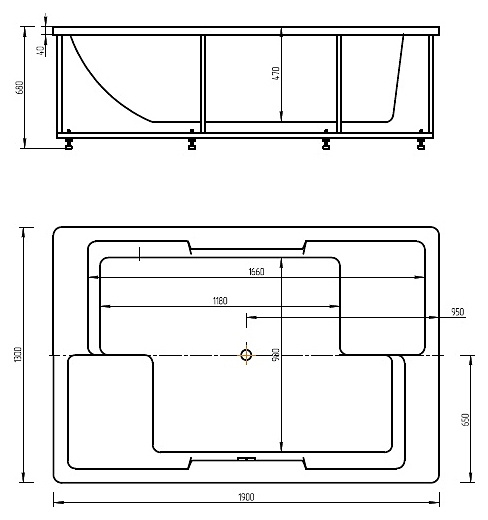 Ванна Aquatek Дорадо DOR190-0000002 190х130 см, с фронтальным экраном, вклеенный каркас, акрил