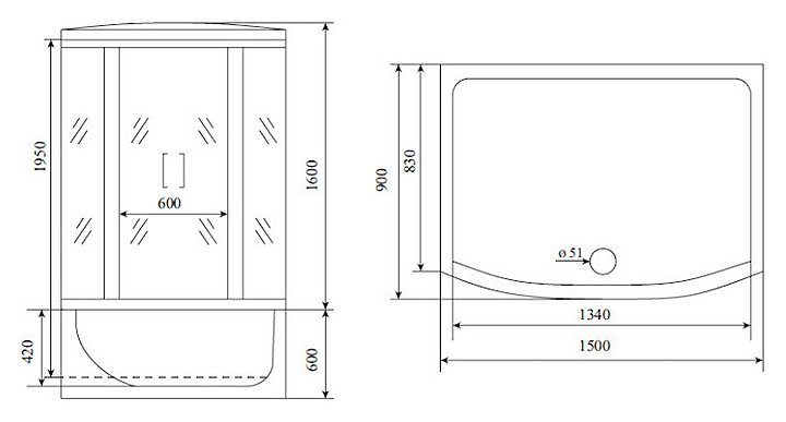 Кабина душевая TIMO Lux T-7750 NEW 150х88х220 см