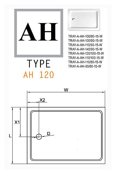 Поддон душевой CEZARES TRAY-A-AH-110/90-15-W 110х90 см, акрил