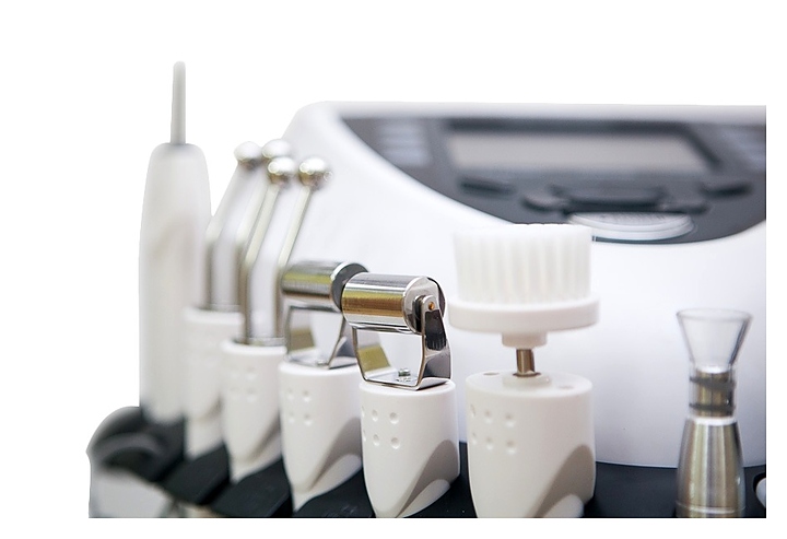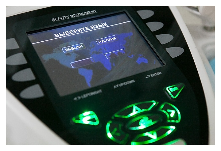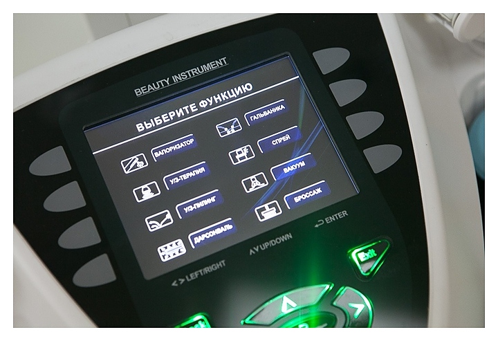 - Ультразвуковой пилинг c 3 режимами для разных типов кожи, бережного отшелушивания верхнего ороговевшего слоя клеток, стимуляции омоложения, терапии акне, себореи и кератоза
