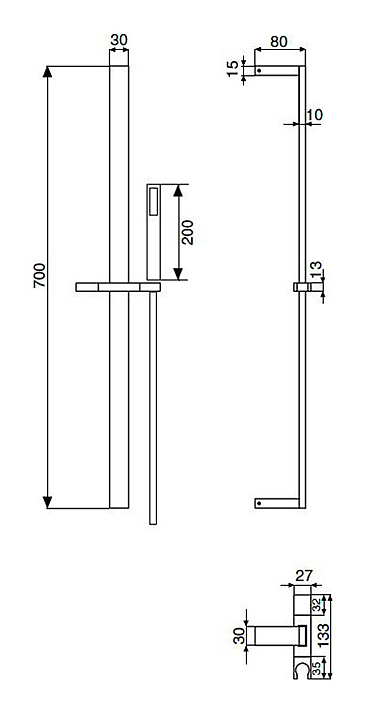 Штанга душевая CEZARES CZR-B-SDQ-NOP, черная матовая