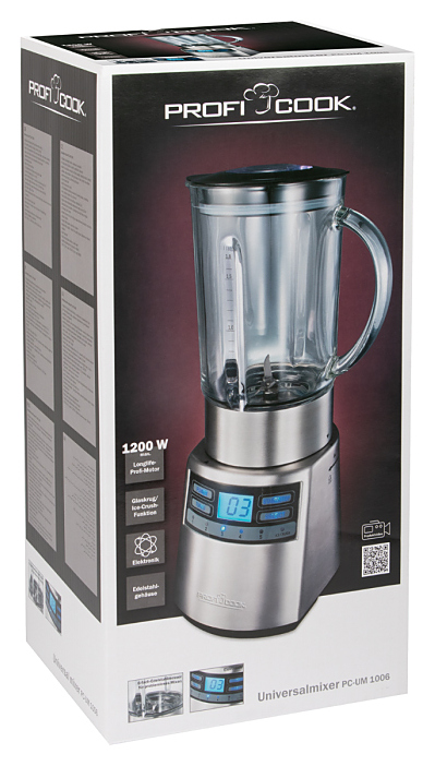 Блендер Profi Cook PC-UM 1006 предназначен для приготовления овощных пюре, смузи, зеленых коктейлей, муссов и кремов в частных домах, квартирах, отелях и офисах. Модель оснащена сенсорной панелью управления с ЖК-дисплеем с синей подсветкой, съемной емкостью для смешивания и съемным ножом с 6 лезвиями. Корпус и нож выполнены из нержавеющей стали, емкость - из стекла. Особенности: