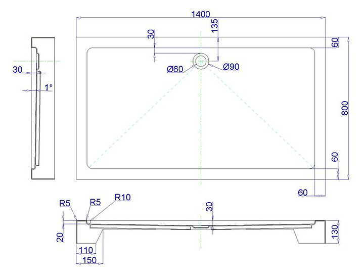 Поддон душевой в сборе Royal Bath RB8140HP 140х80х13 см, акрил, низкий