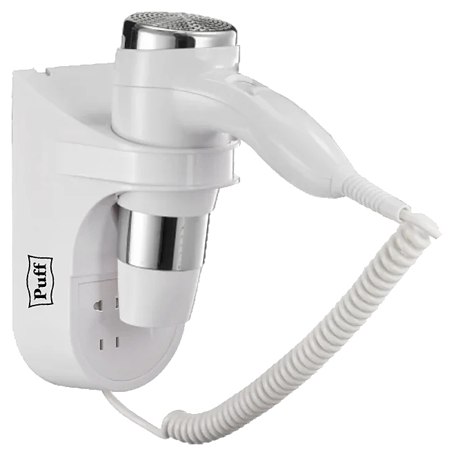 Настенный фен Puff 1600В предназначен для быстрой сушки и комфортной укладки в спорткомплексах, фитнес-центрах, бассейнах, отелях, гостиницах, частных домах и квартирах. Модель оснащена кнопкой включения и выключения, дополнительной розеткой, 2 режимами сушки по скорости и температуре. Корпус выполнен из ударопрочного ABS-пластика. В комплект поставки входят крепления. Особенности: