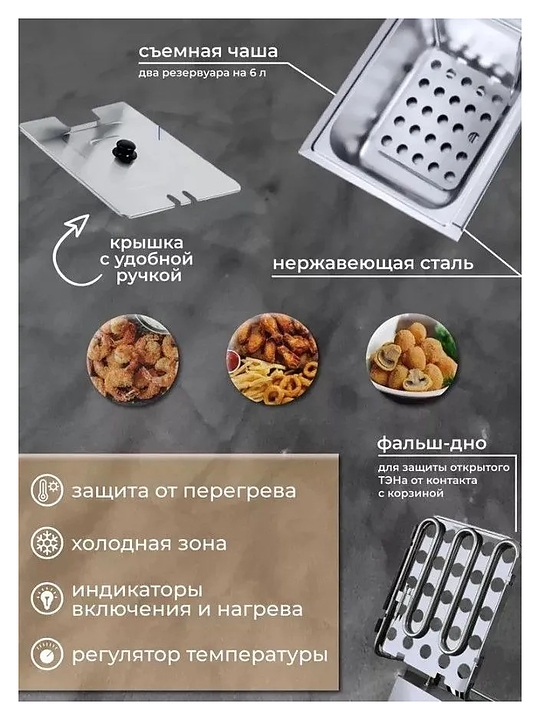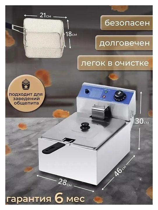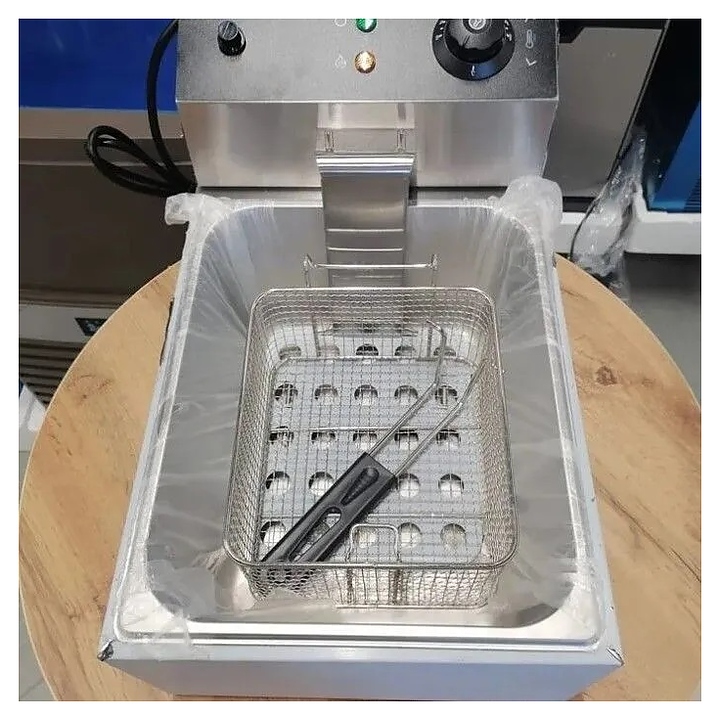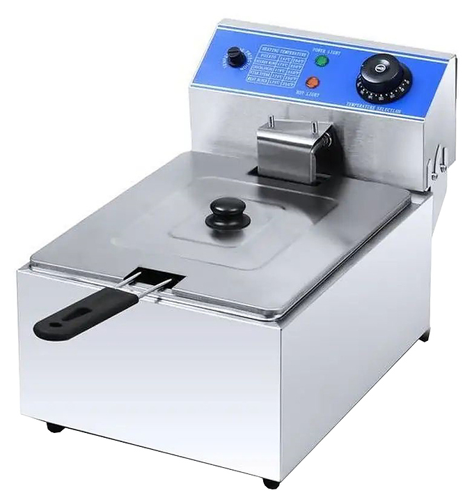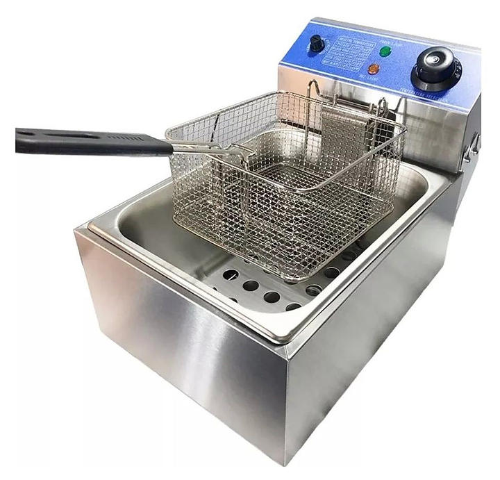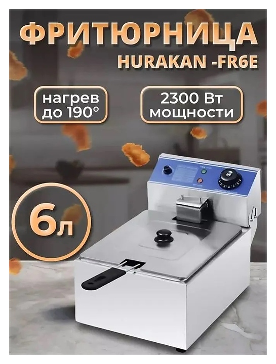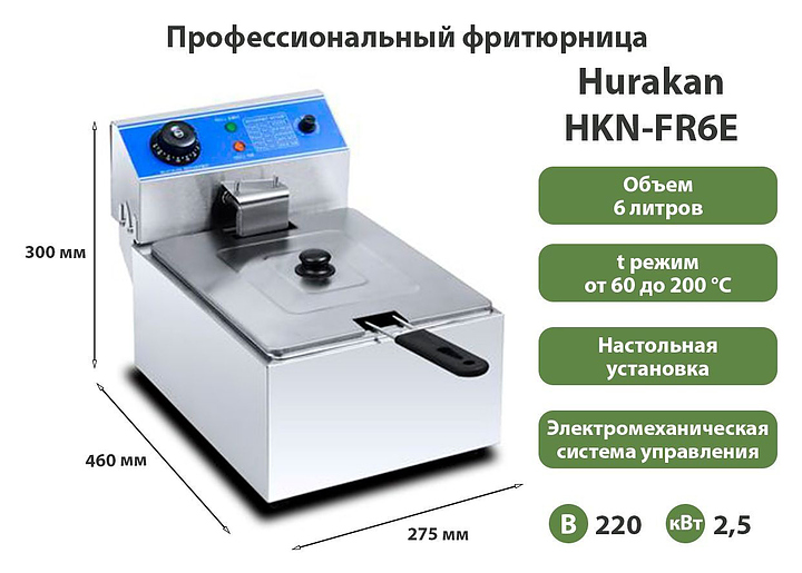 Фритюрница Hurakan HKN-FR6E предназначена для приготовления широкого спектра блюд в большом объеме разогретого до определенной температуры масла или жира на предприятиях общественного питания и торговли. Модель оснащена электромеханической системой управления и регулировкой температуры. Корпус выполнен из нержавеющей стали. В комплект поставки входит 1 корзина с крышкой и вилка. Дополнительные характеристики: