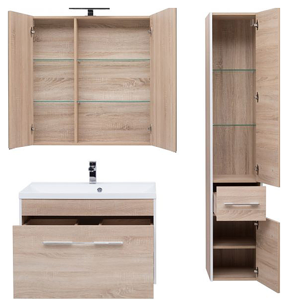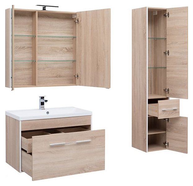 Шкаф зеркальный Aquanet Августа 90 дуб сонома