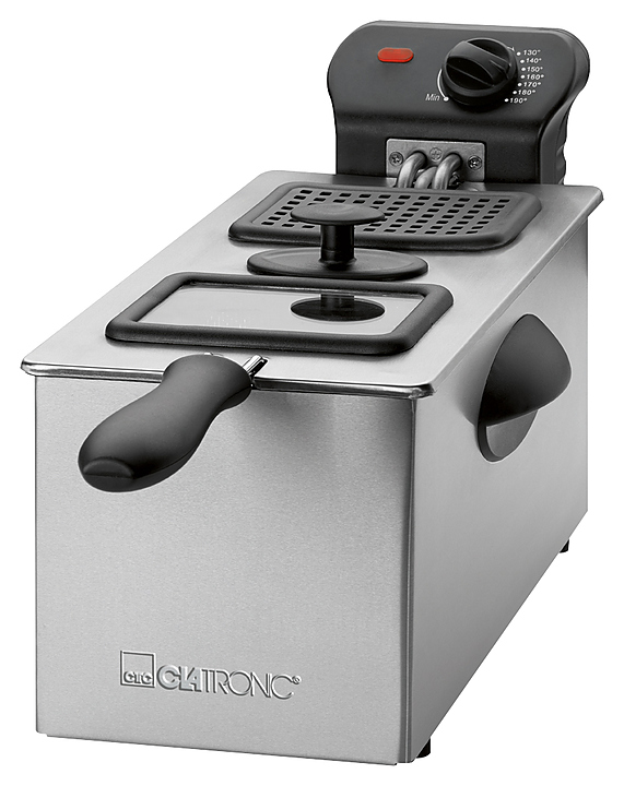 Фритюрница Clatronic FR 3587 предназначена для приготовления различных продуктов в большом количестве горячего масла или жира в частных домах и квартирах. Модель оснащена термостатом с контрольной лампой, съемным контейнером для масла, крышкой со смотровым окном и термоизолированной ручкой. Корпус, крышка и нагревательный элемент выполнены из нержавеющей стали. Особенности: