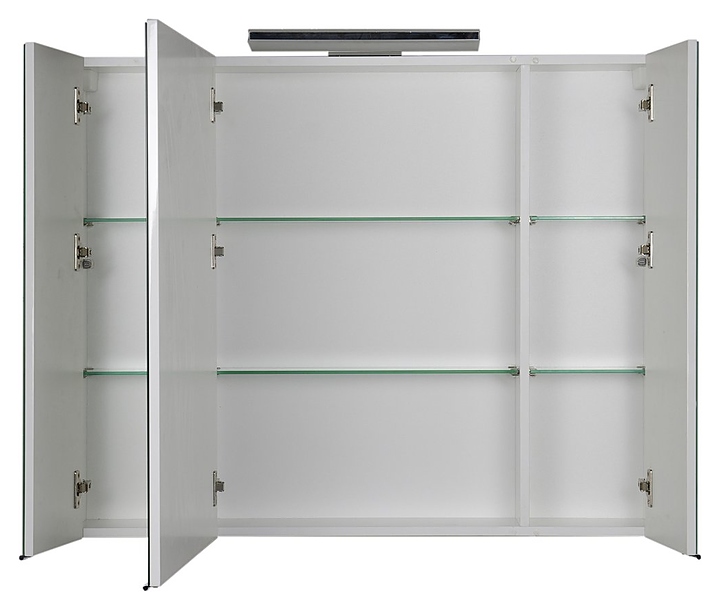 Зеркальный шкаф Aquanet Орлеан 105 дополнит интерьер ванной комнаты. За счет подвесной конструкции изделие позволяет экономить пространство в ванной комнате и облегчает уборку. Модель оснащена 3 распашными дверцами и 2 стеклянными полками в каждом отделении. Корпус изделия выполнен из влагостойкой ЛДСП, а фасад из МДФ и покрыт глянцевой краской. Светильник в комплект поставки не входит и приобретается отдельно. Особенности: