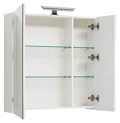Зеркальный шкаф Aquanet Йорк 85 дополнит интерьер ванной комнаты. За счет подвесной конструкции изделие позволяет экономить пространство в ванной комнате и облегчает уборку. Модель оснащена 2 распашными дверцами и 2 стеклянными полками в каждом отделении. Корпус изделия выполнен из влагостойкой ЛДСП, а фасад из МДФ и покрыт глянцевой краской. Светильник в комплект поставки не входит и приобретается отдельно. Опции (заказываются отдельно):