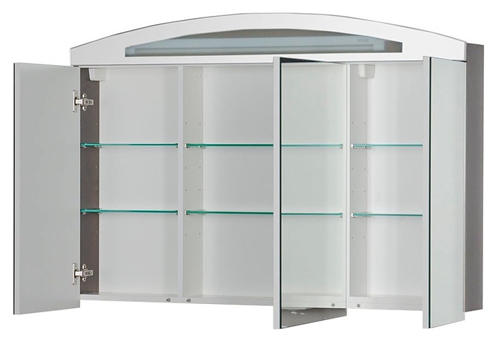 Зеркальный шкаф Aquanet Тренто 120 дополнит интерьер ванной комнаты. За счет подвесной конструкции изделие позволяет экономить пространство в ванной комнате и облегчает уборку. Модель оснащена подсветкой, 3 распашными дверцами и 2 стеклянными полками в каждом отделении. Корпус изделия выполнен из влагостойкой ЛДСП, а фасад из МДФ покрыт глянцевой краской. Дополнительные характеристики: